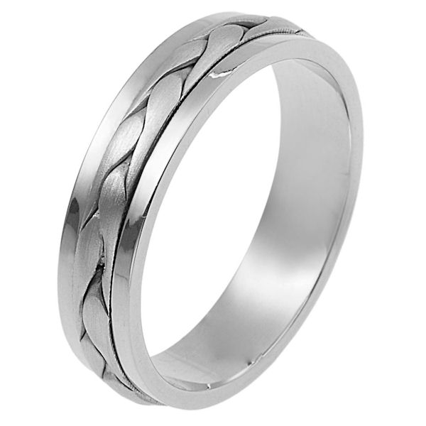 Platinum hand made comfort fit Wedding Band 5.0 mm wide. The ring has a handmade braid in the center with a brush finish. The edges are polished. Different finishes may be selected or specified.