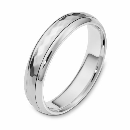 Platinum 5.0 mm Wide Comfort Center Rotating Hand Made Spinning Wedding Band. The center of the ring has a hammered pattern all around the band and spins. The whole ring is polished. Different finishes may be selected or specified.