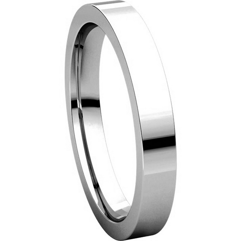 18 kt white gold Plain 3.0 mm Wide Flat Comfort Fit Wedding Band. The ring is a polished finish. Different finishes may be selected or specified.
