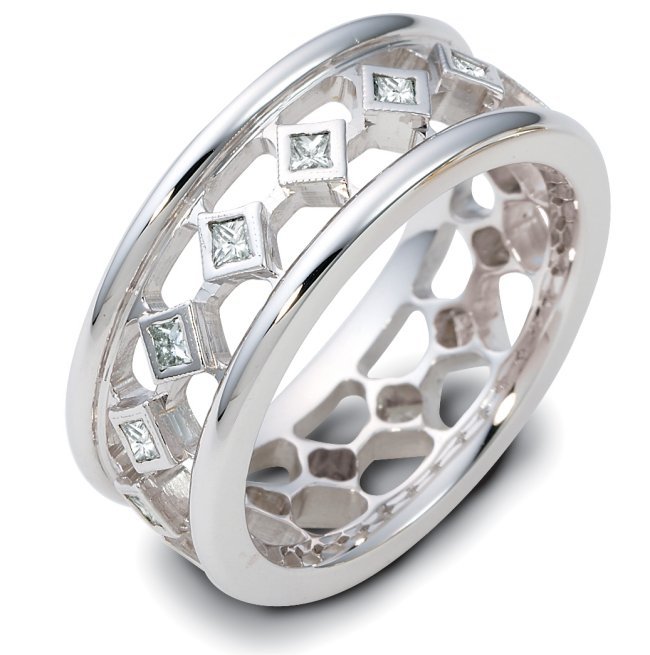 Platinum 7.0 mm wide, diamond ring. Diamonds total weight is 0.38ct in size 6.0. Diamonds are VS1-2 in clarity G-H in color. The ring has a polished finish. Different finishes may be selected.