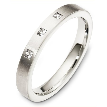 18 Kt White gold diamond wedding band, 3.0 mm wide, comfort fit band. It holds 0.09 ct tw diamonds, VS in clarity and GH in color. The finish on the ring is matte. Other finishes may be selected or specified.