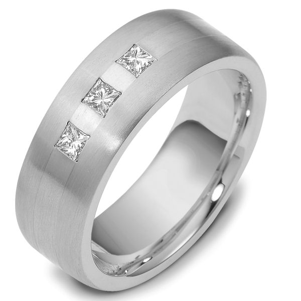 18Kwhite gold, 7.5 mm wide, comfort fit, 0.39 ct total weight diamond ring. Diamonds are graded as VS1 in clarity G-H in color. The finish on the ring is matte. Other finishes may be selected or specified.