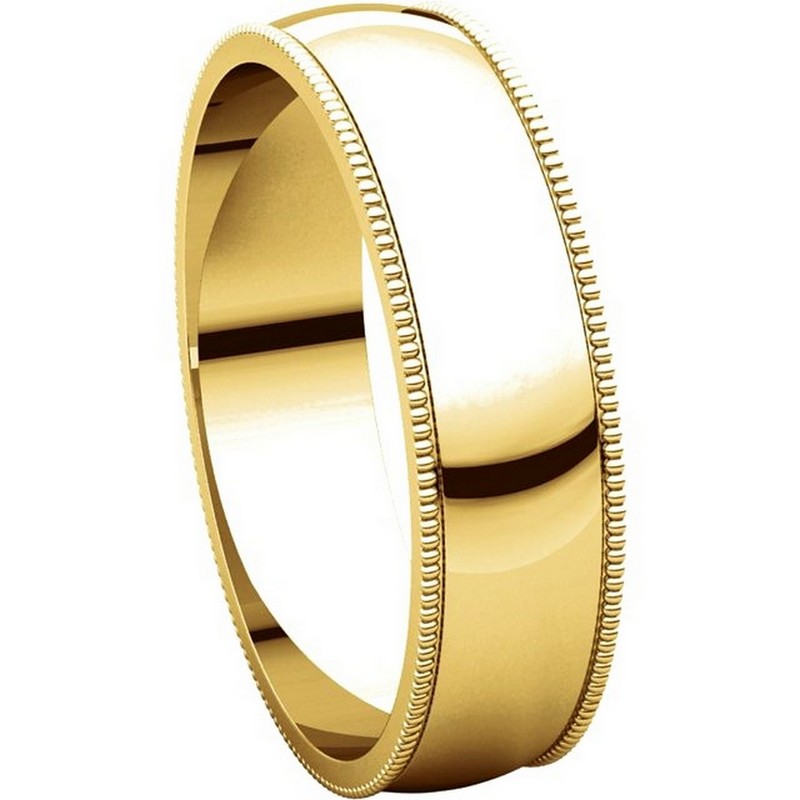 10Kt yellow gold, 5.0 mm wide, milgrain edge wedding band. The finish on the ring is polished. Other finishes may be selected or specified.