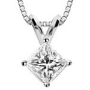 14K white gold 0.25 ct princess cut diamond pendant. The diamond is graded as SI1-2 (minimum SI2) in clarity minimum I in color.