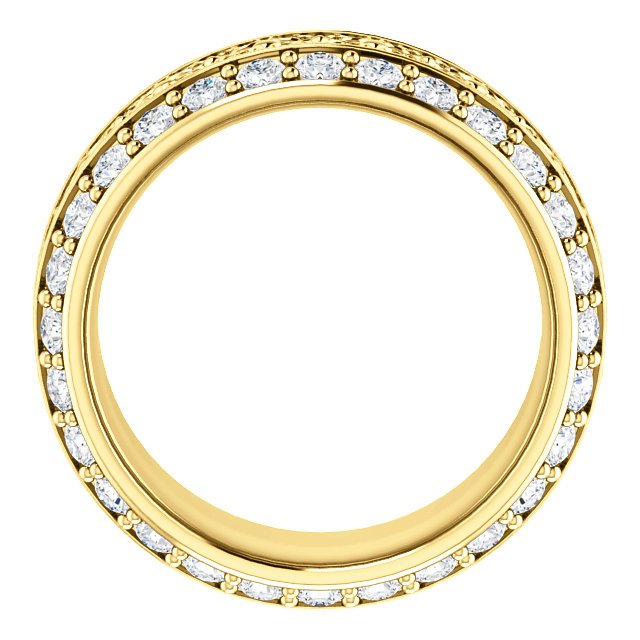 Diamond eternity band made in 14K yellow gold with 56 round cut brilliant diamonds weighing together approximately 1.68ct in size 7. The diamonds are graded as VS in clarity G-H in color.