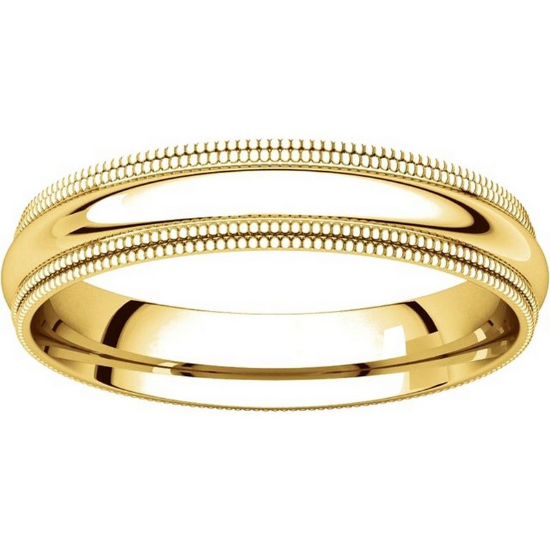 10K yellow gold  4.0 mm wide comfort fit double milgrain edge wedding band. The finish on the ring is polished. Other finishes may be selected or specified.