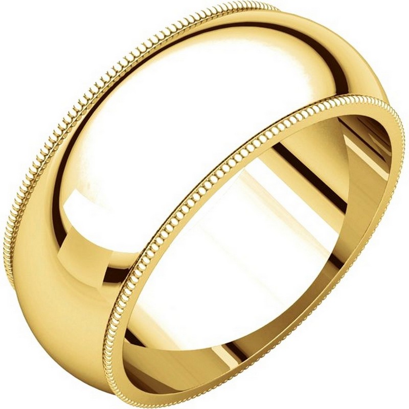 14 kt yellow gold 10.0mm wide heavy comfort fit, milgrain edge wedding band. The finish on the ring is polished. Other finishes may be selected or specified.