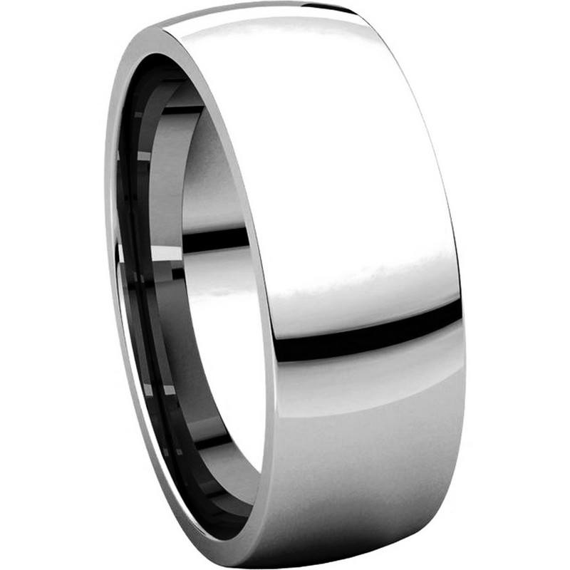 Platinum, comfort fit, 7.0 mm wide, plain wedding band. The finish on the ring is polished. Other finishes may be selected or specified.